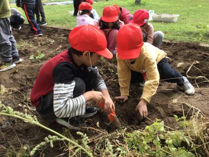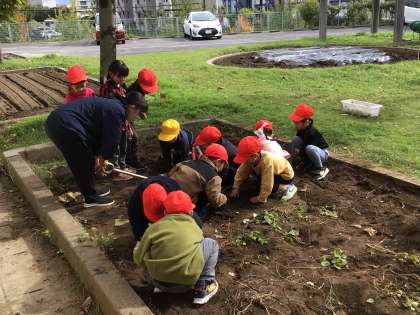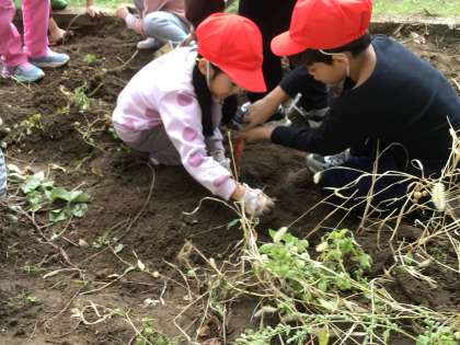 1年生の生活科の様子です。サツマイモの収穫をしました。掘り残しがないように、最後まで一生懸命イモを探しました。