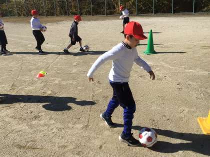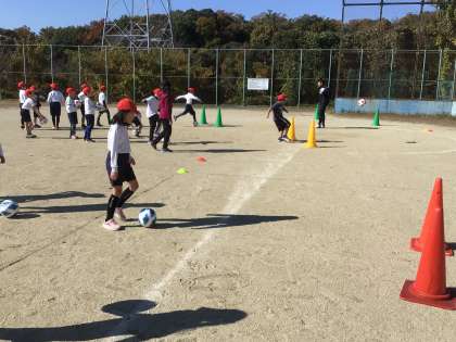 ドリブルしてシュートをする練習をしました。回数を重ねることで、強いシュートを打つことができるようになっていました。