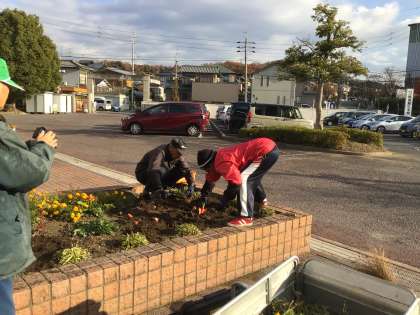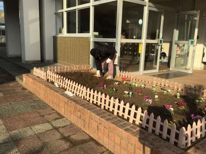 今年最後の花ボラさんの活動がありました。今日は、チューリップの球根を植えていただきました。春にきれいな花が咲くのが楽しみですね。今年1年、季節ごとに植え替えていただいた花で玄関周りがとても華やかでした。ありがとうございました。