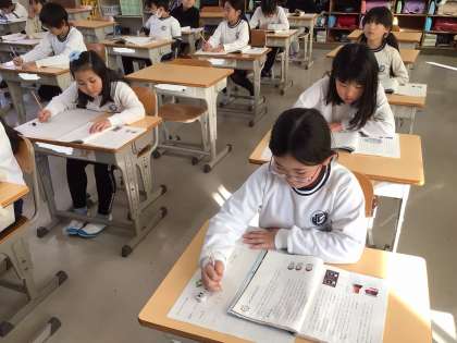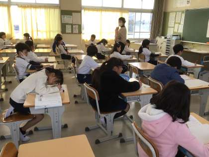 総合の授業で手話について学びました。国語の教科書を参考に本文から内容を読み取り、プリントにまとめていきます。実際に手話もやってみたようです。