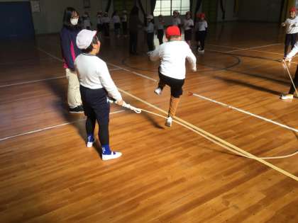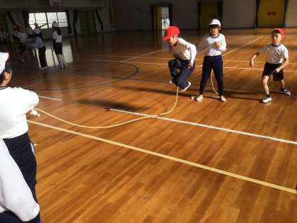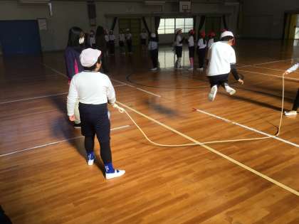 3年生の体育の様子です。みんなで数を数えながら一生懸命大縄跳びの練習をしました。