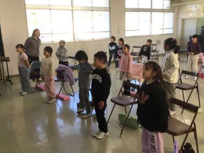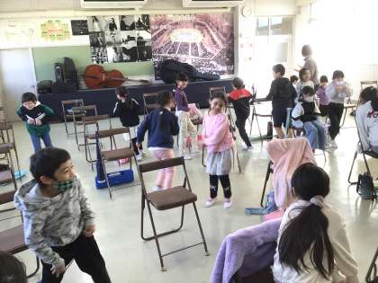 2年生の音楽の様子です。楽しく歌ったり、リズムに合わせて体を動かしたりしました。その後、「こぎつね」を鍵盤ハーモニカで演奏できるように運指を練習しました。