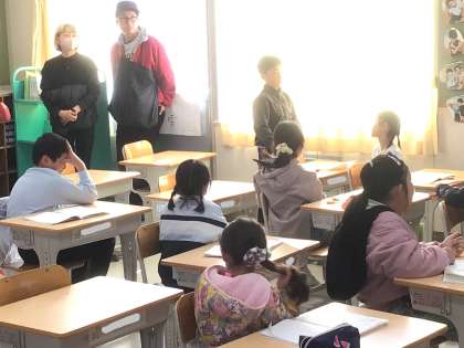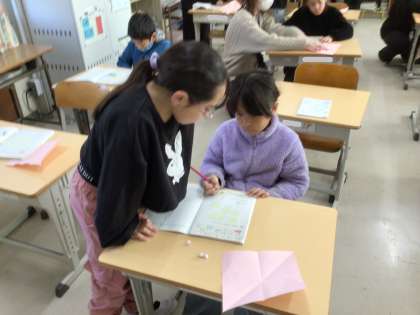 2年生の算数の様子です。いろいろな四角形の中から正方形と長方形を見つけました。正方形、長方形と分かった理由も発表することができました。