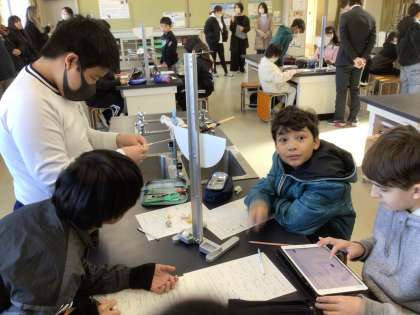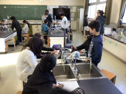 5年生の理科の様子です。班ごとにふりこの実験を行いました。ふりこの動く時間を計測し、その平均値を出しました。みんなで協力して取り組むことができていました。