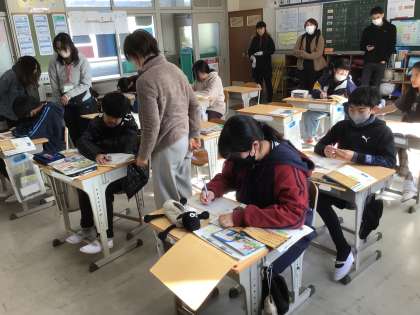 6年2組の社会の様子です。参勤交代について学びました。なぜ江戸時代には参勤交代が行われたのかを考えました。参勤交代を行う大名の立場で、みんな、考えることができていました。