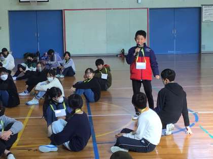 終わりの会では、互いに感想を伝え合いました。とても楽しい時間となったとともに、仲を深める機会となりました。中学校での再会が楽しみだと思える活動となりました。