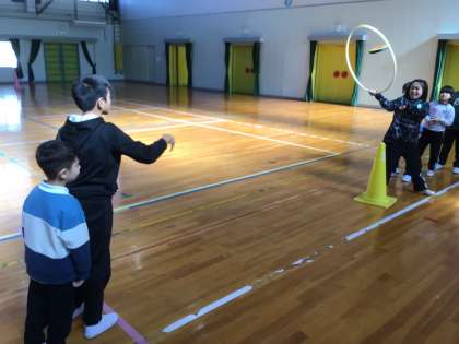 グループごとに校内各所をまわり、ミッションやクイズに挑戦しました。グループごとに協力して取り組みました。
