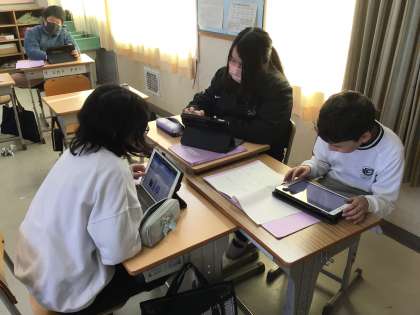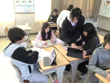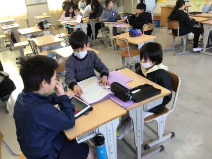 5年生の総合の様子です。学習発表会に向けた準備を始めています。家族に一番伝えたいことは何かを考えながら活動しています。