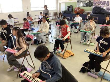 2年生の音楽の様子です。「こぎつね」を鍵盤ハーモニカで演奏できるように練習しています。運指の確認をしたあと、その部分の演奏をしました。明日は最後まで通して演奏する予定です。