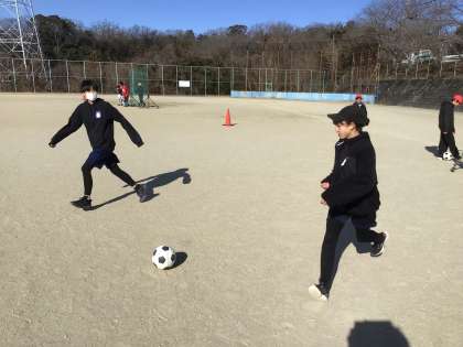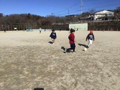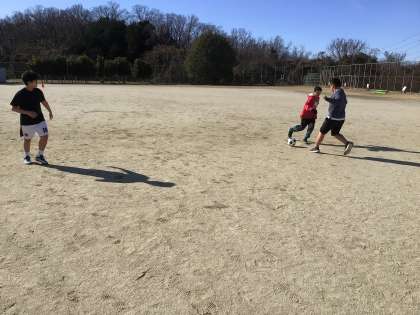 6年生の体育の様子です。オフェンス2人対ディフェンス1人でボールの奪い合いをしました。