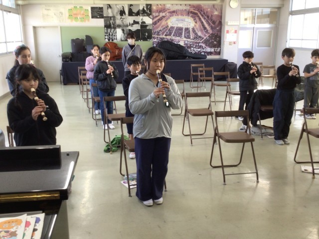 4年2組の音楽の様子です。学習発表会に向けて歌やリコーダーの練習をしています。音楽の時間だけでなく、学年でも練習をがんばっています。