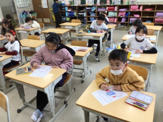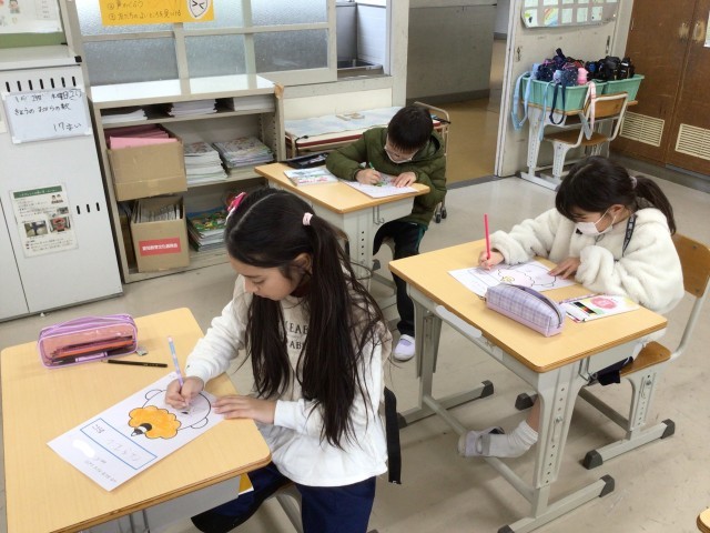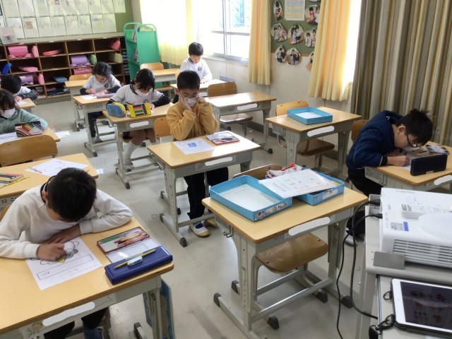 2年生の学活の様子です。スキルタイムで自分が退治したい鬼を考え、伝え合う活動をしました。5時間目にはその鬼を自分で描きました。自分の心の鬼、退治したいですね。
