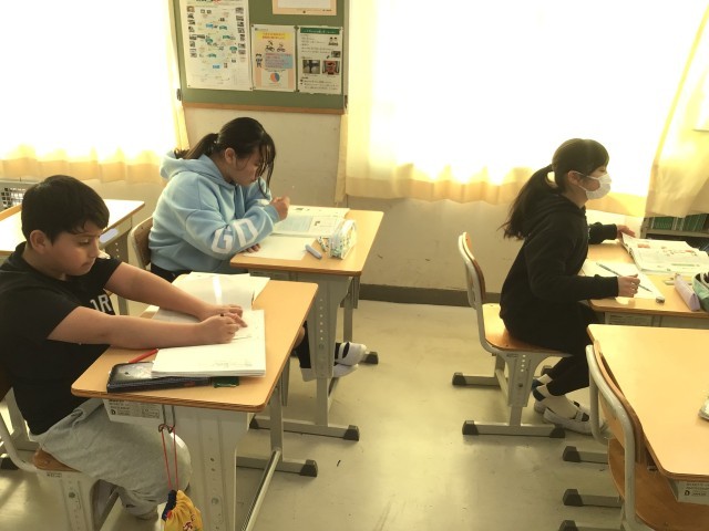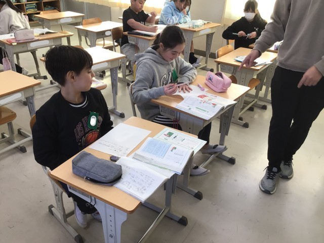 4年2組の国語の様子です。2つのポスターを見比べ、どちらのポスターが魅力を伝えられるのかを考えました。それぞれのポスターのよさを見つけたり、ポスター作成者の思いを考えたりしながら、文章をつくっています。
