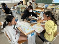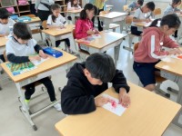 1年生の生活科の様子です。3月に行うポップコーンパーティーの招待状を作成しています。招待状に書く文章を先生と一緒に考え、丁寧な字で招待状を書きました。絵も入った素敵な招待状ができそうです。