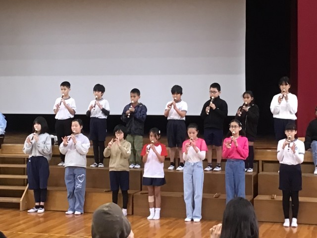 4年生の発表の様子です。最初に環境について学んだことを発表しました。その後、全員で歌を歌ったり、学級ごとにリコーダーやダンスを披露したりしました。練習の成果を発揮し、すべてのことを堂々と発表しました。インフルエンザの影響で平日開催となってしまいましたが、多くのご参観、ありがとうございました。