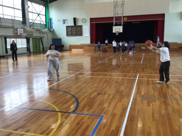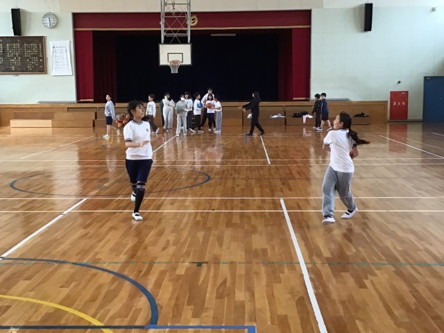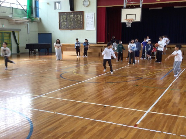 5年生の体育の様子です。バスケットボールで、速攻の練習をしました。練習を何度か繰り返す中で、少しずつ上手にできるようになってきました。