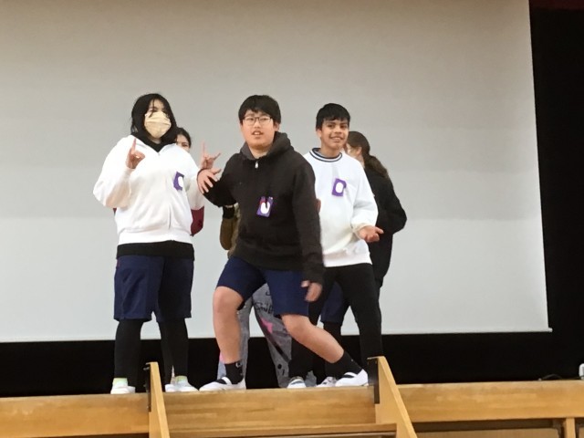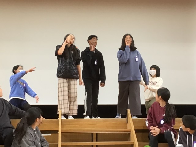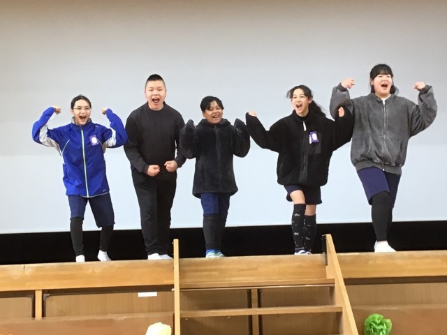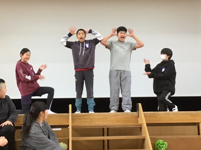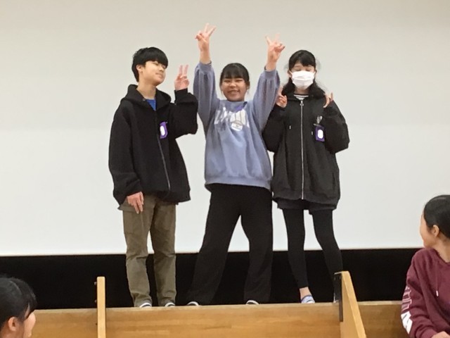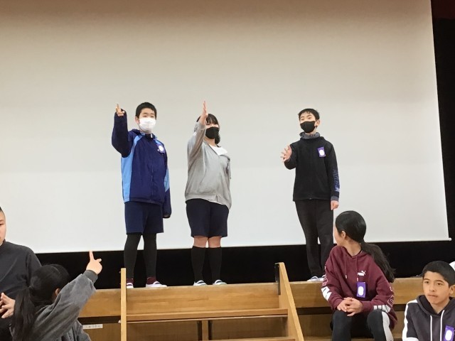 6年生の入場の様子です。一人一人が紹介されたのち、ふれあい班ごとにポーズをとって入場しました。