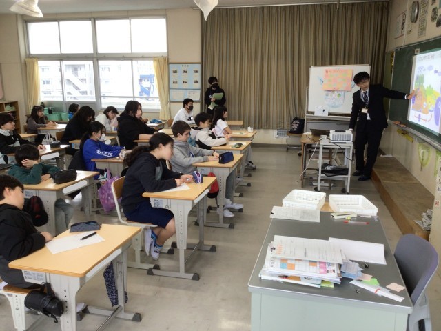 5年生の社会の様子です。「わたしたちの生活と環境」という内容で、教科書では京都の鴨川について学びました。その発展として、豊田市役所の方に来ていただき、矢作川の今と昔の様子や、川が生活と大きく関わっていることなどを教えていただきました。