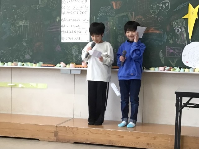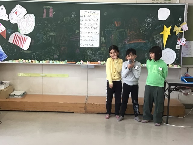 授業の様子【1年生】から(3月11日) 公開日 2026/03/11 更新日 2026/03/11 お知らせ 1年生の生活科の様子です。ポップコーンパーティーを行いました。先生たちを招待して、ソーラン節を踊ったり、クイズを出したりして楽しい会となりました。ポップコーンもとてもおいしかったです。 +4