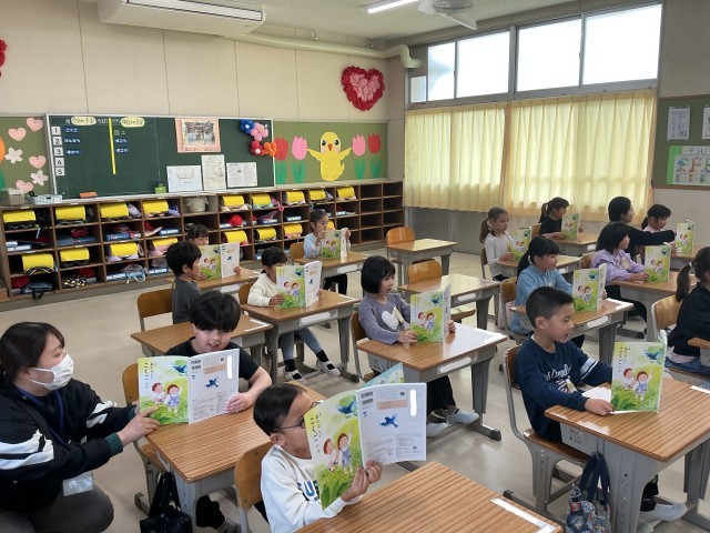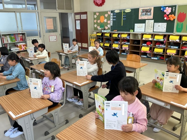 1年生の国語の様子です。「きこえるよ」を音読したり、席が近くの子と名前を伝え合ったりしました。次回の授業では、みんなの前で自分の名前を伝える活動をしていく予定です。