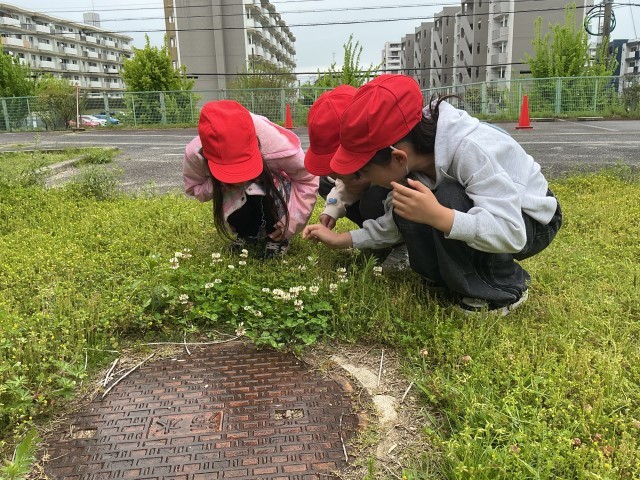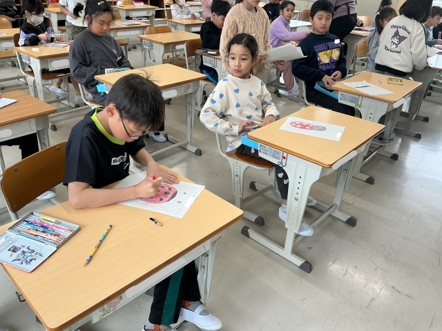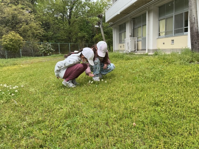 3年生の理科の様子です。花や虫など、自然の中でいろいろなものを見つけました。見つけたものの中から一つ選んで、教室で絵を描きました。