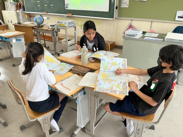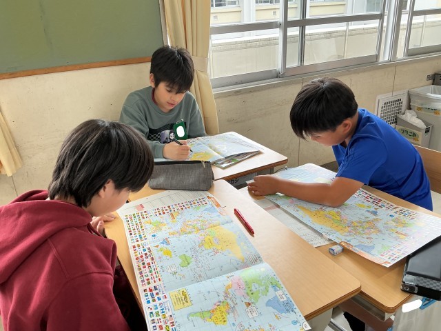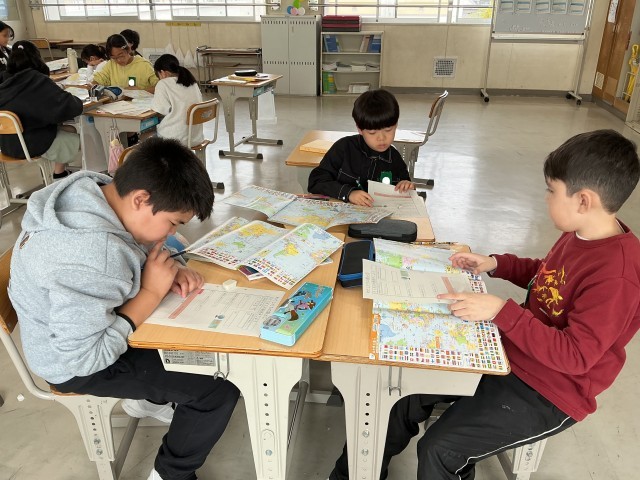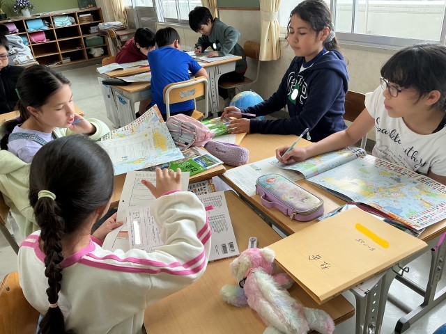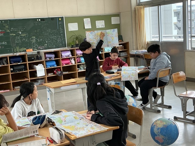授業の様子【5年生】から(4月17日) 公開日 2026/04/17 更新日 2026/04/17 お知らせ 5年1組の社会の様子です。「わたしたちの国土」の学習をしています。グループで地球儀と地図について見つけたことを発表しました。その後、地球儀と地図の同じところも探しました。 +3