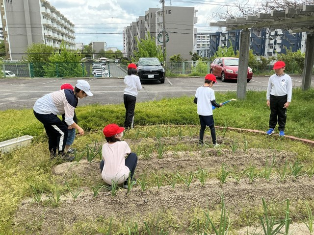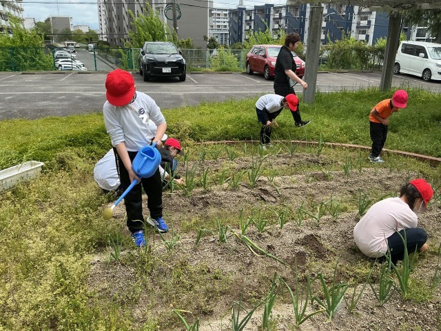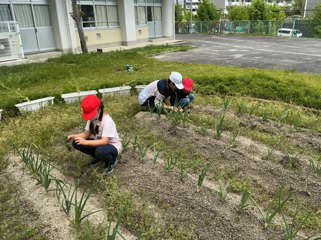 4組・5組・6組の生活科の様子です。畑で水やりと草取りをしました。少しでも大きな玉ねぎができるように、みんなでがんばりました。