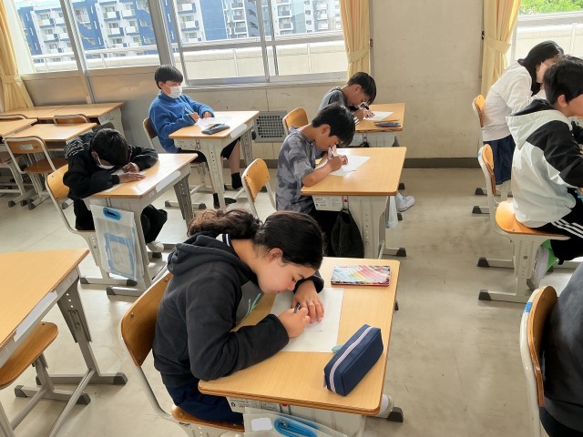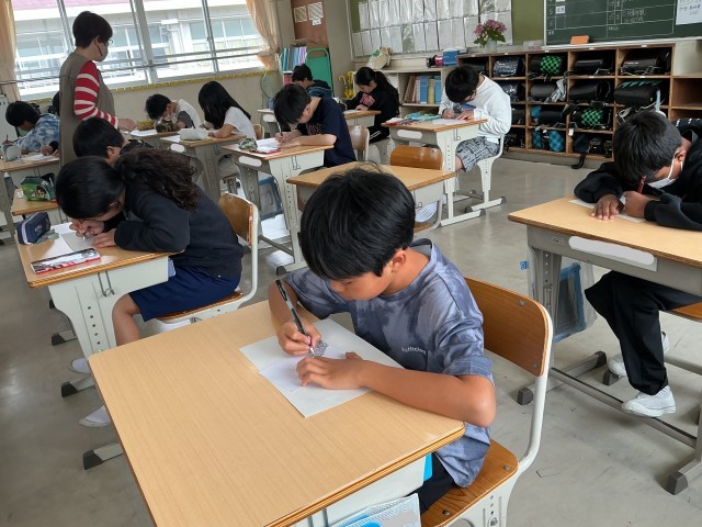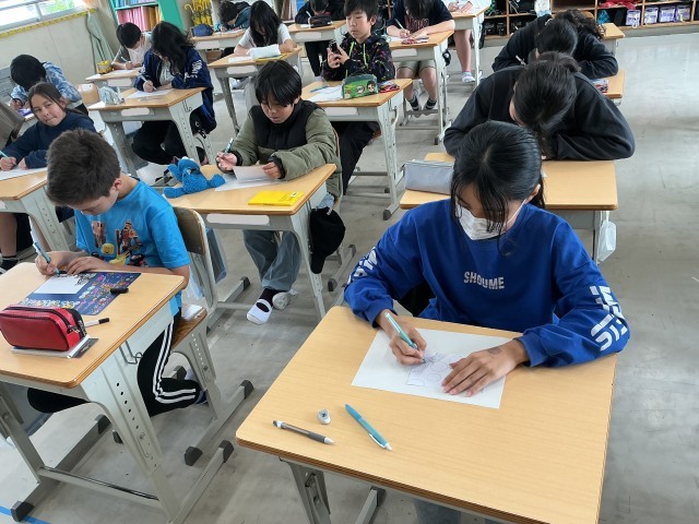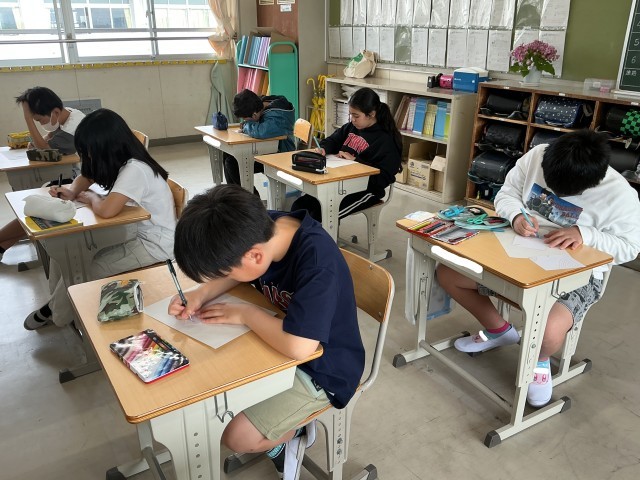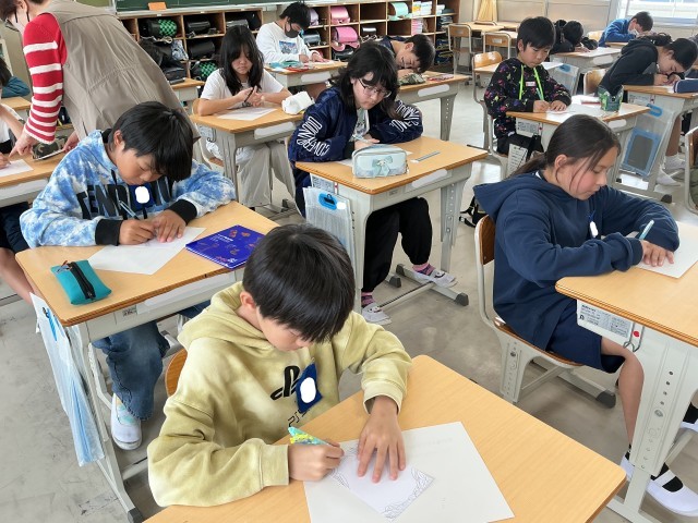 6年生の図工の様子です。意味のない模様をたくさんつなげて、絵を描いています。一人一人がとても集中して描いている姿は、さすが6年生といった姿でした。個性あふれる模様ができつつあり、完成が楽しみです。