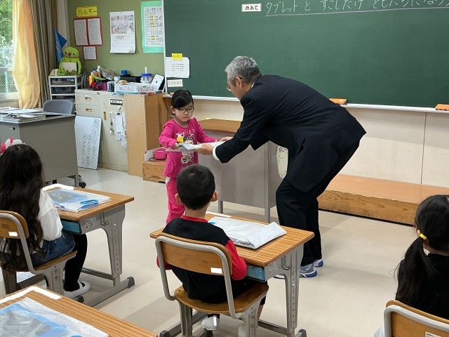 1年生の学活の様子です。GIGA開きを行いました。一人ずつ学習用タブレットを受け取り、使い方のルールを知った後、学習用タブレットの使い方を親子で学びました。多くのご参観、ありがとうございました。