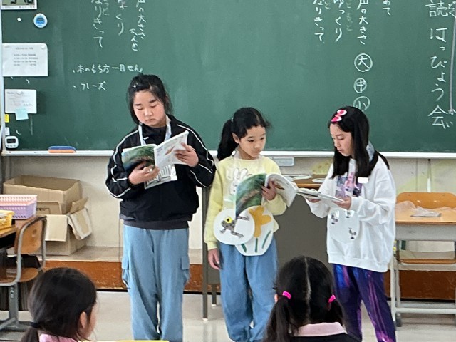 3年生の国語の様子です。グループごとに練習したり、全体で練習したりした後に、グループごとに音読発表会を行いました。みんな、堂々とした姿で発表することができました。多くのご参観、ありがとうございました。