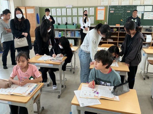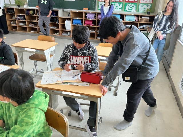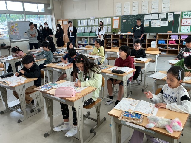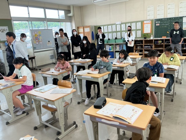 5年1組の外国語の様子です。聞き取った内容を発表したり、参観してくださった家族に見守られながら自分の名前のスペルを書いたりしました。多くのご参観、ありがとうございました。