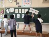修学旅行へ行った6年生に向けて、「お帰りなさい」のメッセージを6年生の教室に飾り...