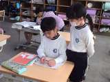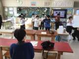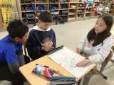 町探検で見つけたことを、順序に気をつけながら発表しています。この時間はペア練習で...