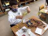 収穫したお芋のつるを使って、クリスマスリース作りをしています。家から持ってきたモ...