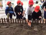 来年の春に花が咲くように、花壇にチューリップの球根を植えました。植えた横には「こ...