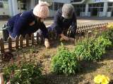 6年生2人が、年間を通して、正面玄関の花壇の草取りや落ち葉拾いなどを行なってくれ...