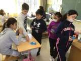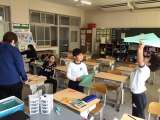 理科の時間です。豆電球や磁石を使ったおもちゃ作りに挑戦していました。友達と相談し...