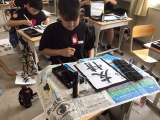 ミシン実習が始まりました。授業ボランティアさんにも手伝ってもらい、ナップサック...