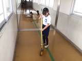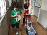 長い渡り廊下。今日は4年生2人が頑張ってお掃除をしていました。きれいにしてくれて...