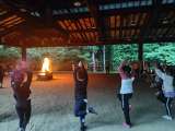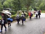 1時間ほどかかって、バスは野外センターに到着しました。 小雨が降っていたので、駐...