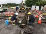 駐車場の一部を掘って、工事を行なっています。そのために、出入り口がひとつになって...