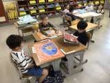 1年生の図工の授業の様子です。クレヨンや折り紙を使って描いた夏休みの思い出の絵...
