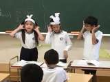 2年生の国語の様子です。「ニャーゴ」の音読発表会を行いました。動作を入れたり、...
