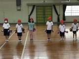 1年生の体育の様子です。前半はダンスの練習、後半はドッジボールを行いました。み...