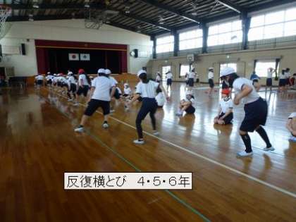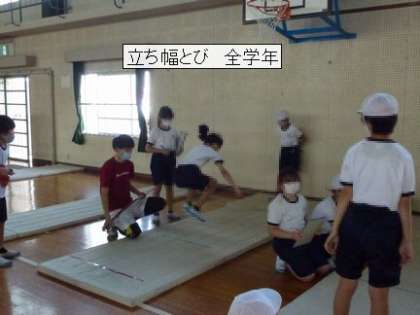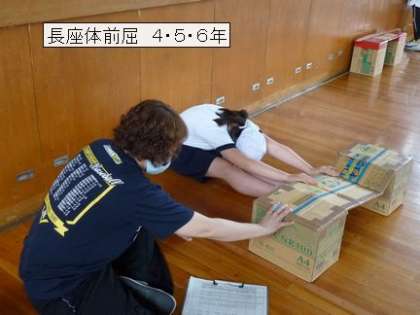 体育館では、立ち幅とび・長座体前屈・反復横とびの3種目を行います。
