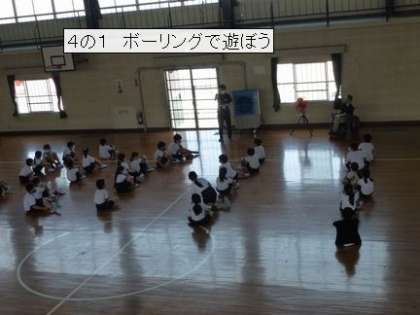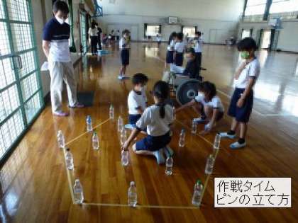 4の1は、体育館で行いました。ピンの並べ方にも工夫がみられます。