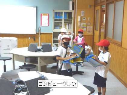各教室には、ひみつの文字が1つずつ隠されており、全教室を回って見つけると、メッセージがしあがります。楽しそうに文字探しをする様子が見られました。