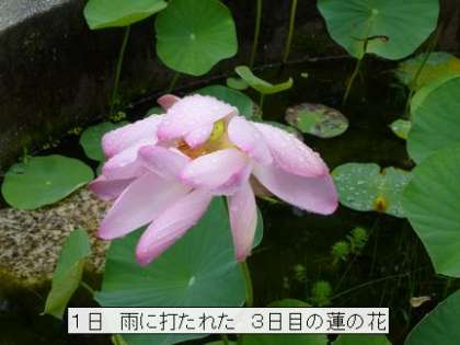 7月2日 今日のきらめき 3日目の 雨に打たれたハスの花