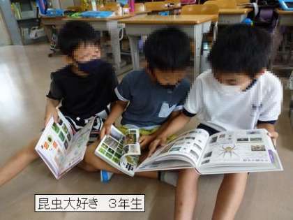 7月15日 マクドナルド301御立町店さんからの贈り物 2 公開日 2021/07/15 更新日 2021/07/15 校長室から 今年から理科が始まり、昆虫について興味がわいてきた3年生。昆虫の図鑑をリクエストしました。各クラスに、すぐに調べられるようにと3種類の昆虫図鑑をプレゼントしていただきました。野見小の昆虫博士を目指します。