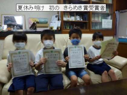 お子様のおうちでの頑張りに、保護者の方から「きらめき賞」を推薦していただけませんか?連絡帳等で、校長までご連絡ください。